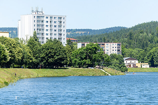 Plochy kolem nádrže jsou zaplavené, návštěvníci si tak ručníky nebo deky nerozloží na pláži u Slunečních lázní nebo třeba u prutu. Místo toho musí volit strmé svahy, na kterých je rekreace značně nepohodlná. (30. června 2025)