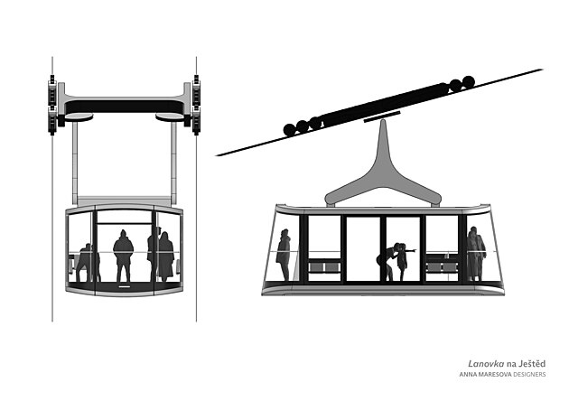 Designérka Anna Marešová představila v Liberci dvě varianty, jak by mohla vypadat lanovka na Ještěd. Na snímku varianta 2 (3. prosince 2024)