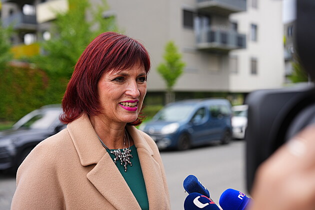 Lídryně liberecké kandidátky hnutí ANO Jitka Volfová ve volebním štábu. (4. října 2025)