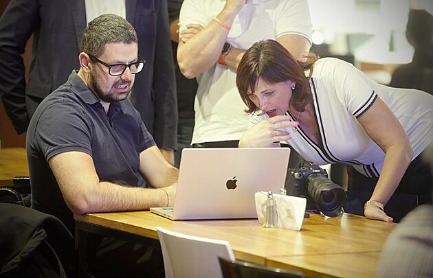 Volební štáb ANO v Libereckém kraji je v Obchodním centru LBC. Výsledky sleduje i starostka České Lípy Jitka Volfová. (21. září 2024)
