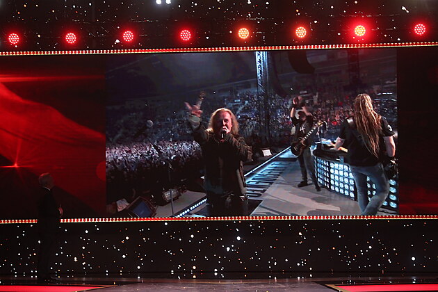 Skupina Kabát si zlatého Slavíka přebrala nezvykle na dálku přímo během koncertu v Liberci (12. listopadu 2022).