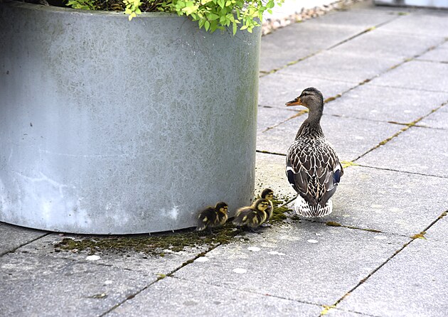 Na terase krajského úřadu se vylíhla kachňátka. (12. června 2025)