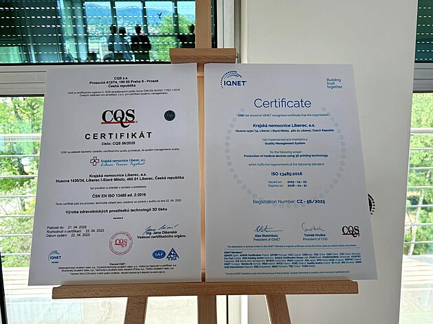 Liberecká nemocnice může vyrábět zdravotnické potřeby pomocí 3D tisku. Opravňuje ji k tomu certifikát, který získala jako jediná v Česku a třiadvacátá v Evropě.