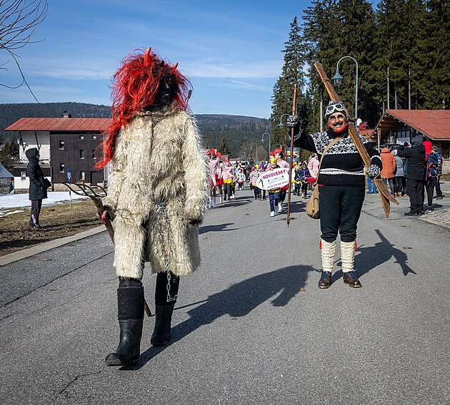 Průvodu se zúčastnila celá řada masek. (15. března 2025)