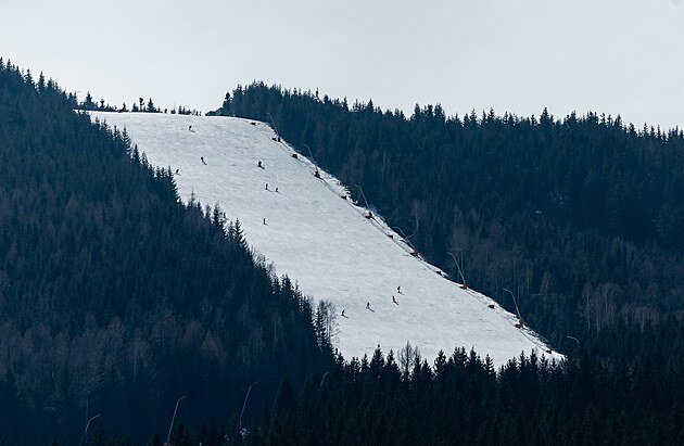 Zatímco Krakonoš ve městě vítal jaro, na sjezdovce se lyžovalo. (15. března 2025)