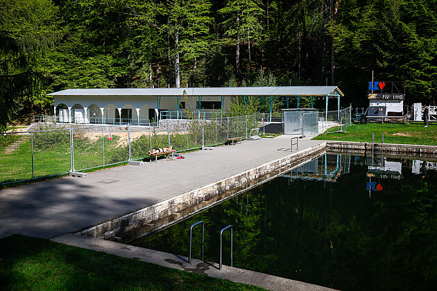 Na Lesním koupališti v Lidových sadech v Liberci přes zimu postavili nové zázemí. (29. dubna 2025)