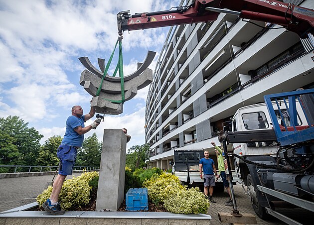 Před liberecký Wolkerák se vrátila socha Sluneční hodiny. (24. června 2025)