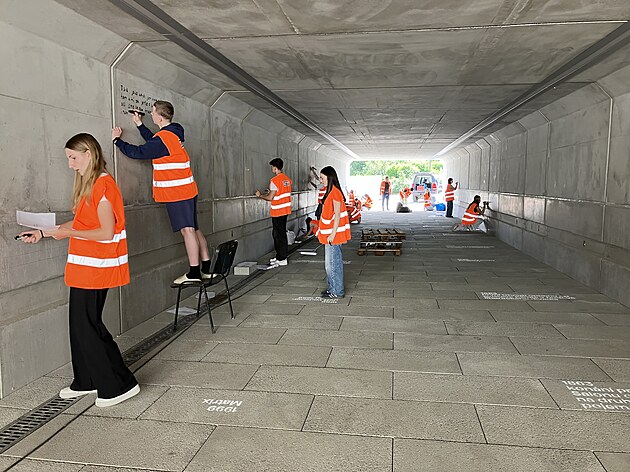 V novém podchodu u liberecké arény si budou lidé moci přečíst úryvky básní autorů spjatých s městem. Na instalaci se podíleli i studenti nedalekých středních škol.