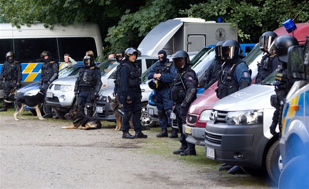 Fanoušky Hajduku Split musela hlídat policie (20. srpna 2015).