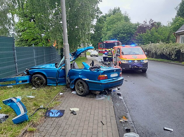 Řidič v Liberci obmotal BMW kolem sloupu. (26. května 2025)