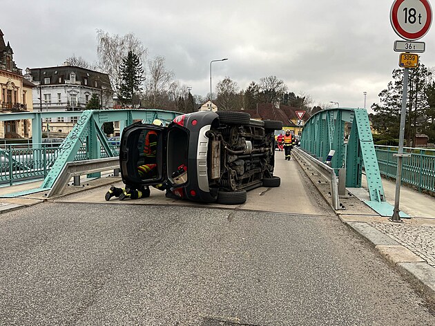 Dopravní nehoda na frýdlantském mostě přes Smědou (11. dubna 2025)