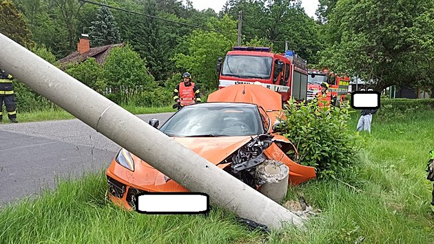 Řidič narazil sportovním vozem do betonového sloupu. (9. června 2025)