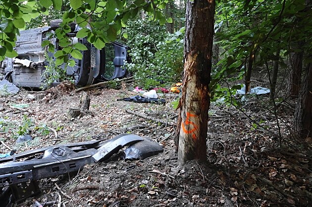 Řidička u Kuřívod nezvládla průjezd zatáčkou a vyletěla ze silnice do příkopu. (30. června 2025)