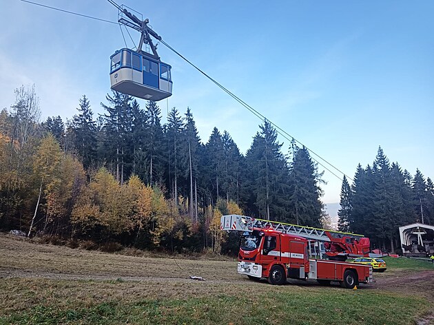 Na Ještědu spadla kabina lanovky. (31. října 2021)