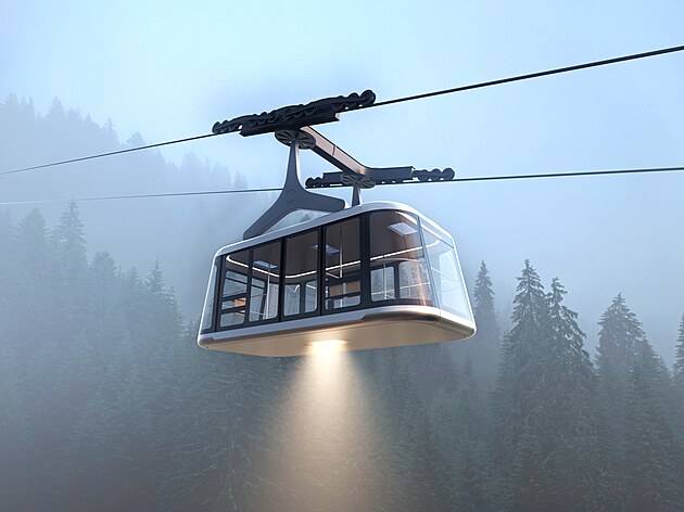Designérka Anna Marešová představila v Liberci dvě varianty, jak by mohla vypadat lanovka na Ještěd. Na snímku varianta 1 (3. prosince 2024)
