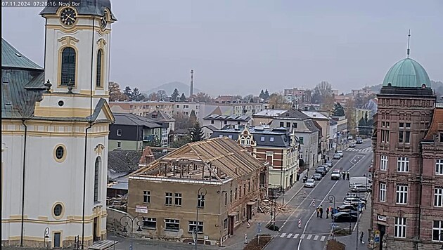 V Novém Boru na Českolipsku se částečně zřítila nejstarší budova, bývalá restaurace Pošta. (7. 11. 2024)
