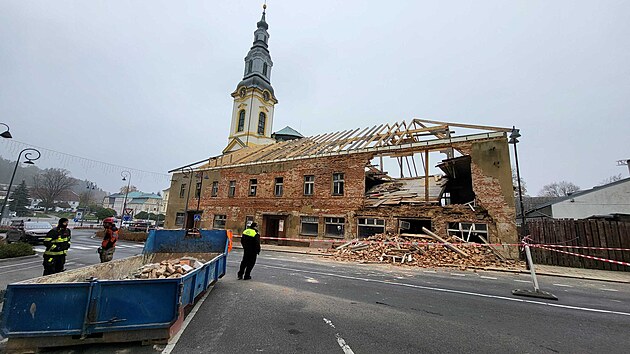 V Novém Boru na Českolipsku se částečně zřítila nejstarší budova, bývalá restaurace Pošta. (7. 11. 2024)