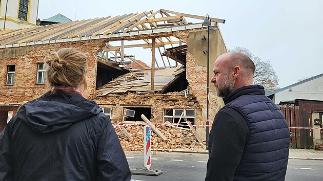 V Novém Boru na Českolipsku se částečně zřítila nejstarší budova, bývalá restaurace Pošta. (7. 11. 2024)