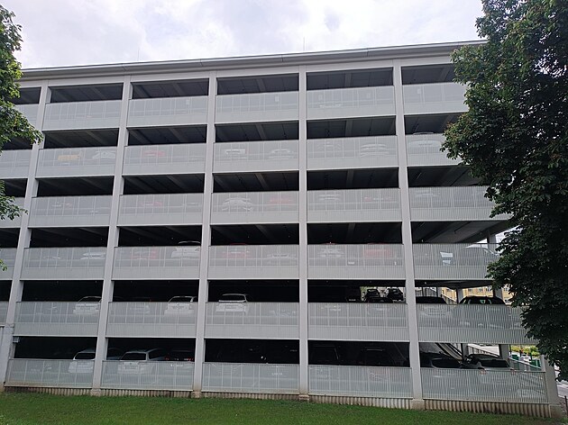 Parkovací dům u Krajského úřadu Libereckého kraje čeká po roce a půl od otevření reklamační oprava. (16. června 2025)