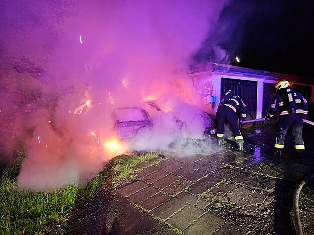 Noční požár tří aut v Liberci (2. srpna 2025)