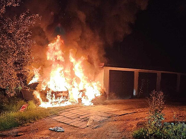 Noční požár tří aut v Liberci (2. srpna 2025)