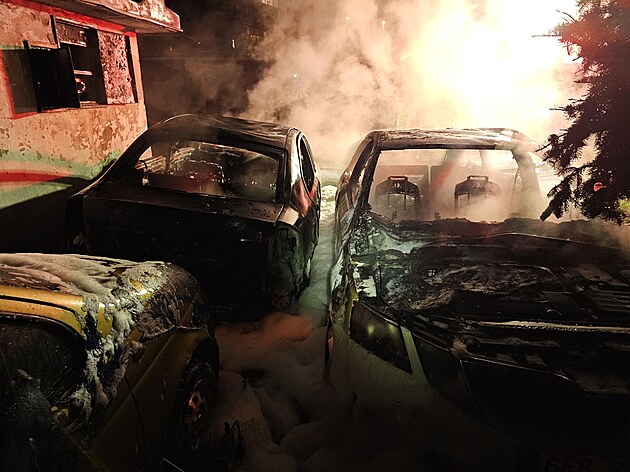 Noční požár tří aut v Liberci (2. srpna 2025)
