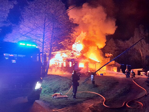 Požár mobilheimu v obci Maršovice u Jablonce nad Nisou zaměstnal v neděli nad ránem celkem čtyři hasičské jednotky. (4. května 2025)