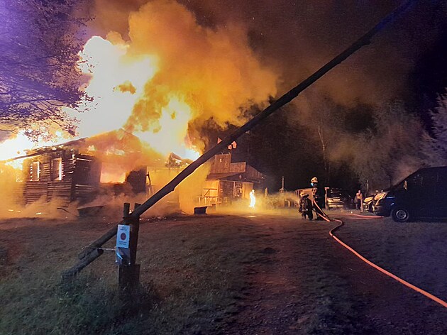 Požár mobilheimu v obci Maršovice u Jablonce nad Nisou zaměstnal v neděli nad ránem celkem čtyři hasičské jednotky. (4. května 2025)