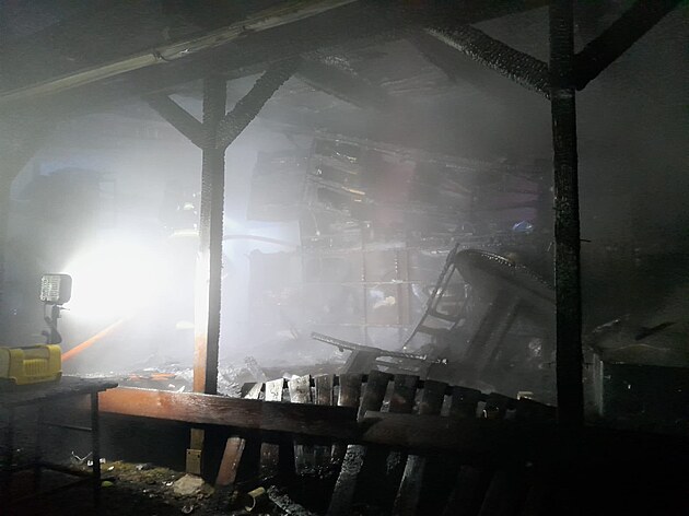 Požár mobilheimu v obci Maršovice u Jablonce nad Nisou zaměstnal v neděli nad ránem celkem čtyři hasičské jednotky. (4. května 2025)