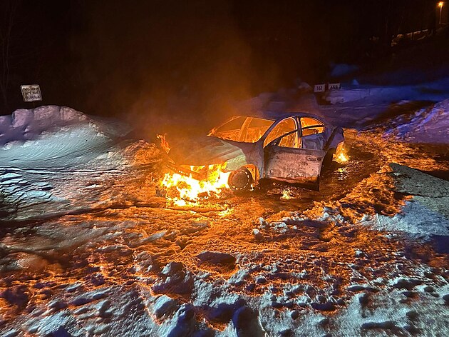 Hasiči likvidovali v Jizerských horách požár auta. (12. ledna 2025)