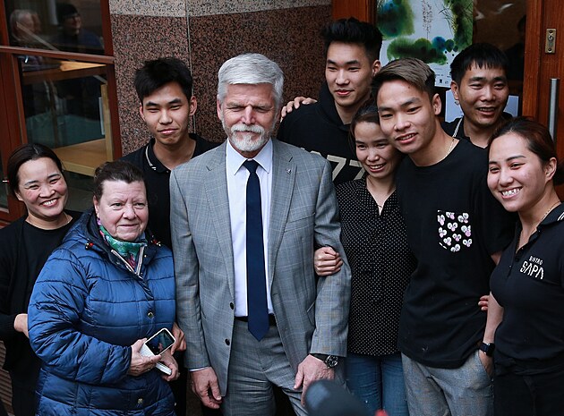 O prezidenta Pavla byl v Liberci zájem. O společnou fotku ho požádali i zaměstnanci vietnamského bistra. (26. dubna 2023)
