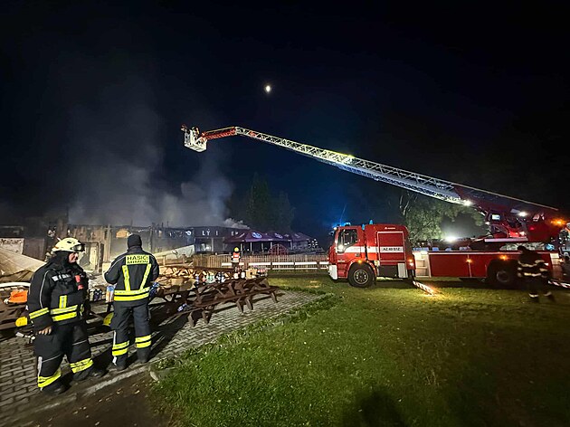 U Máchova jezera v Doksech na Českolipsku vyhořela oblíbená restaurace Bílý Kámen. (16. července 2025)