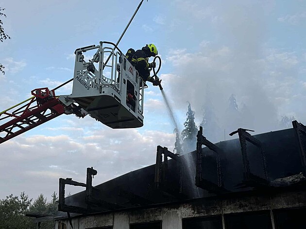 U Máchova jezera v Doksech na Českolipsku vyhořela oblíbená restaurace Bílý Kámen. (16. července 2025)
