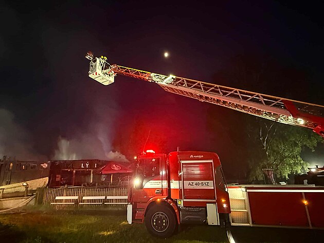 U Máchova jezera v Doksech na Českolipsku vyhořela oblíbená restaurace Bílý Kámen. (16. července 2025)