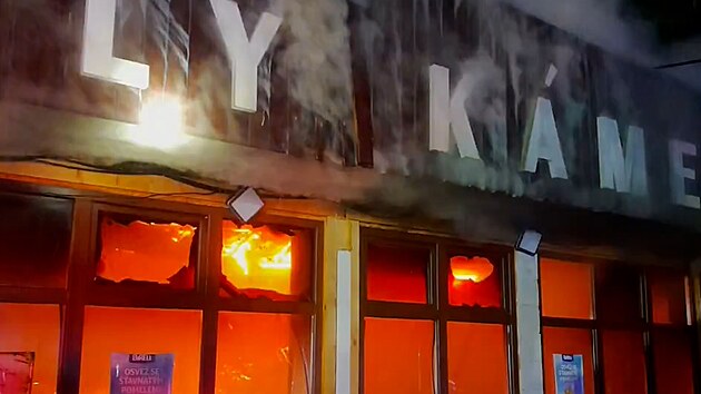 U Máchova jezera v Doksech na Českolipsku vyhořela oblíbená restaurace Bílý Kámen. (16. července 2025)