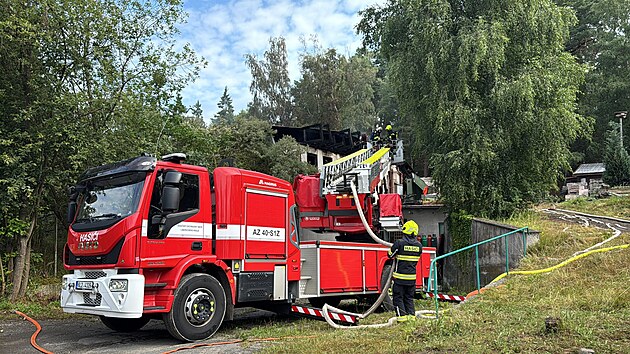 U Máchova jezera v Doksech na Českolipsku vyhořela oblíbená restaurace Bílý Kámen. (16. července 2025)