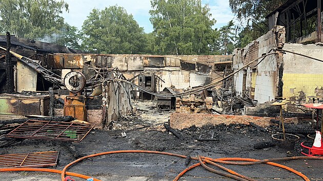U Máchova jezera v Doksech na Českolipsku vyhořela oblíbená restaurace Bílý Kámen. (16. července 2025)