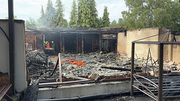 U Máchova jezera v Doksech na Českolipsku vyhořela oblíbená restaurace Bílý Kámen. (16. července 2025)