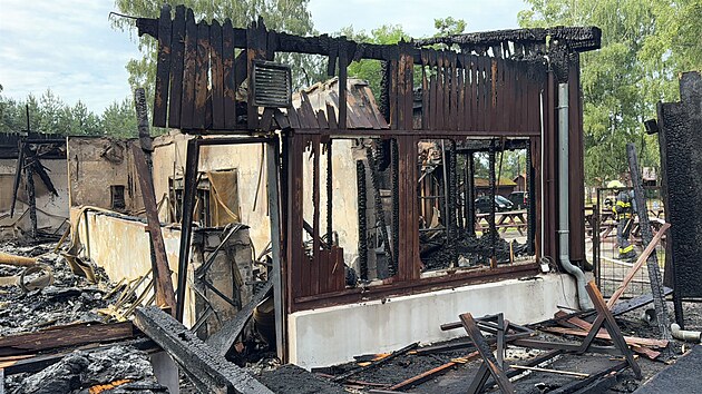 U Máchova jezera v Doksech na Českolipsku vyhořela oblíbená restaurace Bílý Kámen. (16. července 2025)