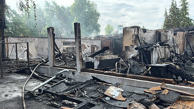U Máchova jezera v Doksech na Českolipsku vyhořela oblíbená restaurace Bílý Kámen. (16. července 2025)