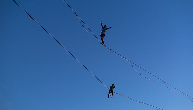 Balancují ve výšce padesáti metrů na „lajnách“ natažených mezi Pannou a Babou. Lanochodci se i letos vrátili na hrad Trosky. Výhledů na Český ráj si kvůli maximálnímu soustředění příliš neužijí, zato přihlížejícím zpestřují návštěvu jednoho z nejvyhledávanějších turistických cílů v Libereckém kraji. (23. června 2025)