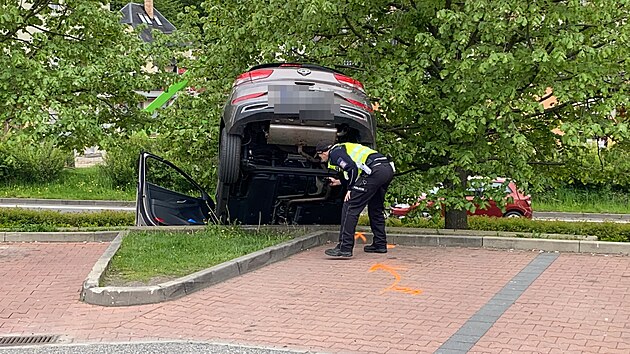 Řidička špatně zařadila a sjela ze zídky. (7. května 2025)