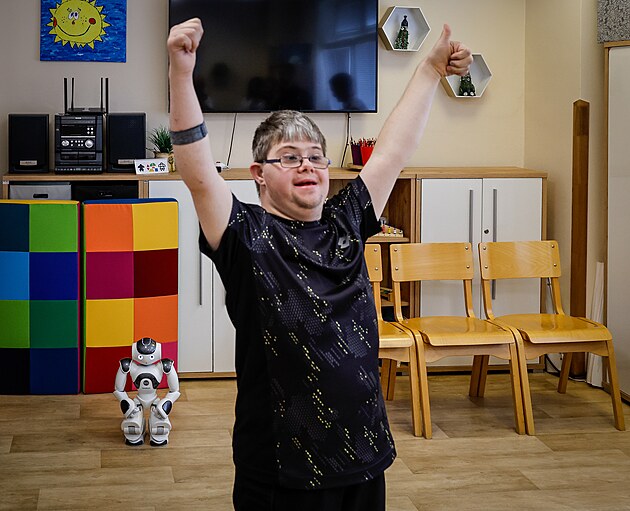 Z robota vybaveného umělou inteligencí jsou hendikepovaní klienti jabloneckého Domova a Centra denních služeb nadšení. (15. července 2025)