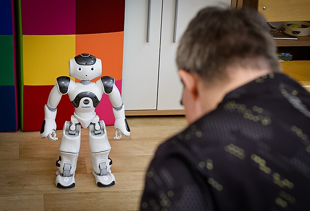 Z robota vybaveného umělou inteligencí jsou hendikepovaní klienti jabloneckého Domova a Centra denních služeb nadšení. (15. července 2025)