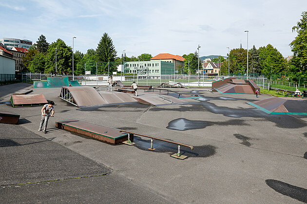 Liberecký skatepark pochází z konce devadesátých let a tomu odpovídá i jeho stav. (21. května 2025)