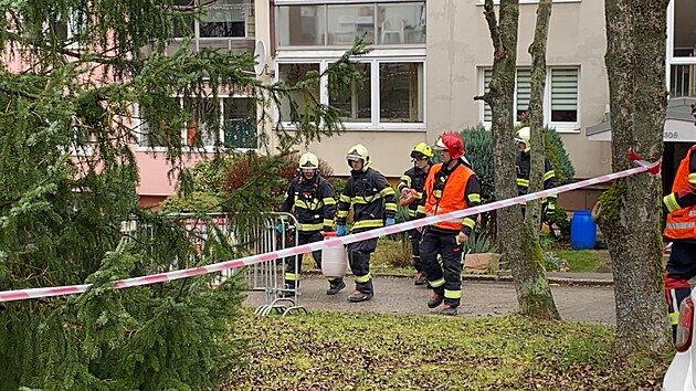 Muž se v libereckých Pavlovicích zabarikádoval v bytě a vyhrožoval ženě, kterou pak těžce zranil. Sám poté skočil z okna. Hasiči následně z domu vynesli sud, kolem něj obehnali prostor páskou a ukryli nádobu pod policejní stan. (26. listopadu 2024)