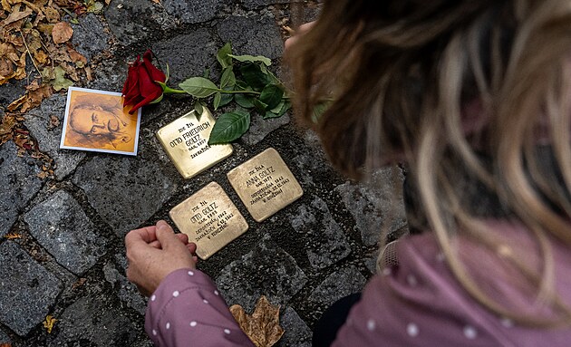 Nový kámen zdobí nyní například chodník před vilou Otto Goltze v Jablonecké ulici. (21. října 2024)