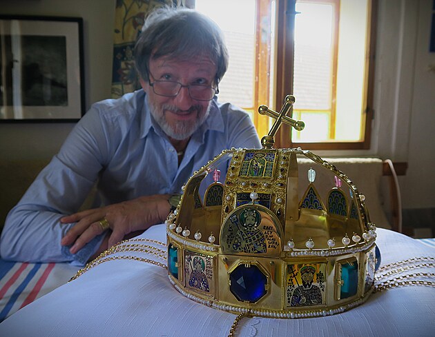 Kopii Svatoštěpánské koruny vytvořil Jiří Urban (na snímku), z jeho dílny pochází i další repliky korunovačních klenotů.