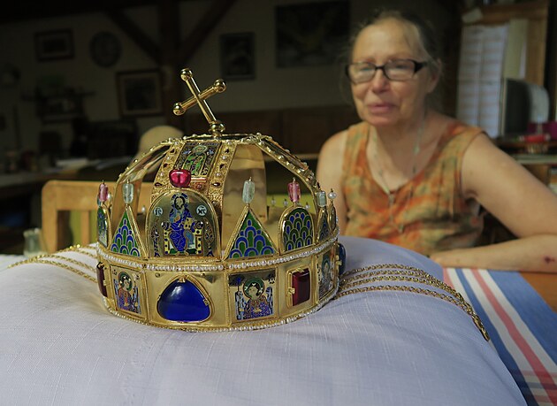 Kopii Svatoštěpánské koruny vytvořil Jiří Urban, z jeho dílny pochází i další repliky korunovačních klenotů.