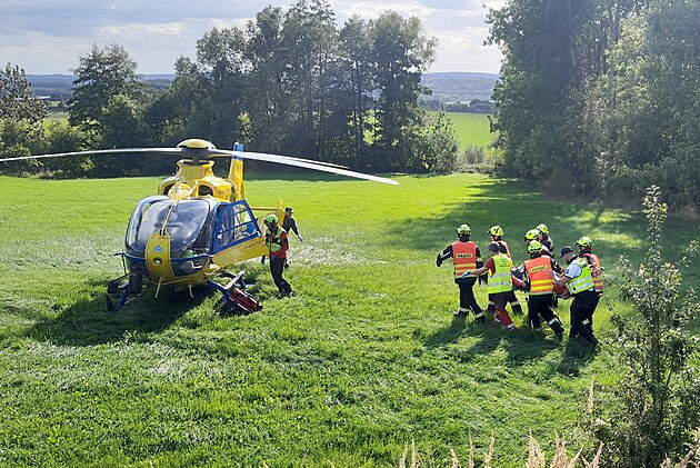 Hasiči v Libereckém kraji zasahovali u dopravní nehody dvou osobních automobilů a autobusu v Tatobitech na Semilsku. (16. září 2025)